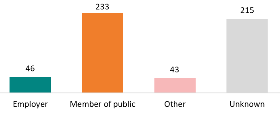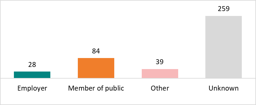 We do not hold information on the source of all referrals received in the quarter. As this information is identified it will be added to the case information. This means numbers may change over time.