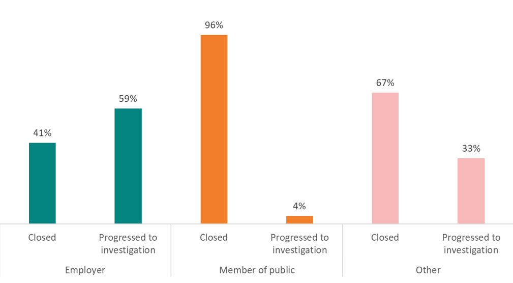 - 48% of concerns progressed to investigation