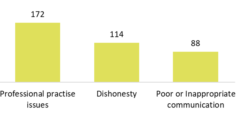 - 172 concerns were received regarding professional practise issues