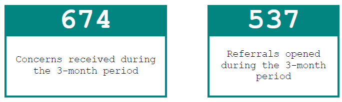 We do not hold information on the type of concerns for all referrals received during the quarter.